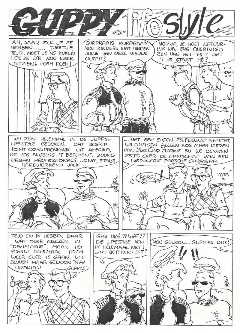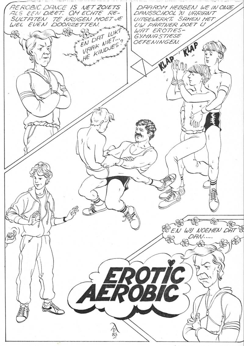 Vier voorbeelden van strippagina's in de Gay krant.