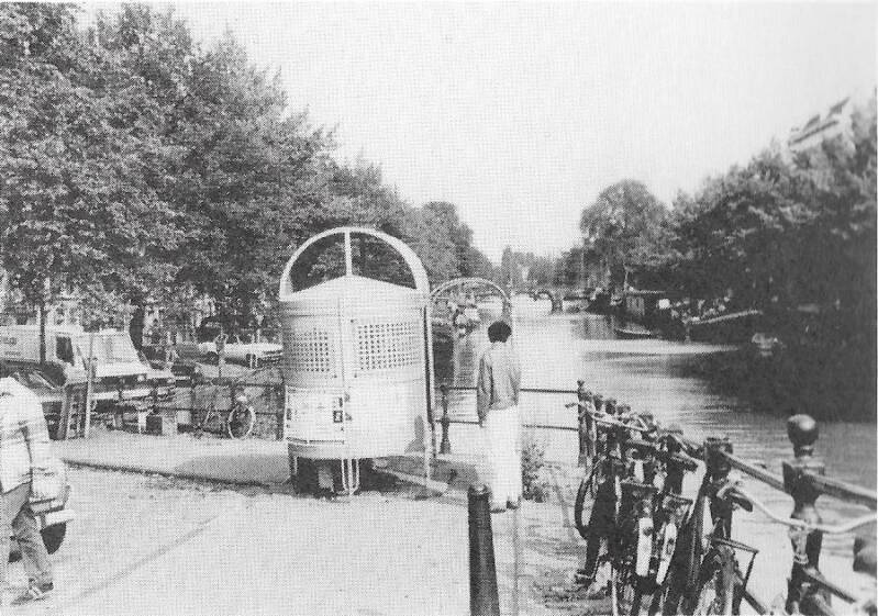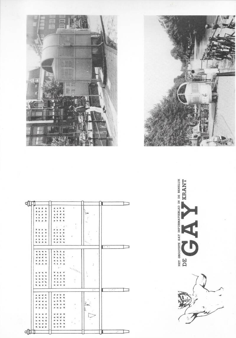 Ik heb bijna twaalf jaar gewerkt als free-lance cartoonist voor de Gay Krant. Om precies te zijn: van 1980 tot begin 1991. Ik heb niet alleen cartoons gemaakt maar ook divers ander werk zoals illustraties, strips en, zoals de foto's boven al aangeven: een bouwplaat van een Amsterdams urinoir. Waarschijnlijk is dit de enige bouwplaat die ooit is gemaakt van dit iconische bouwwerk. Hier zie je alle elementen van dit bouwwerk.