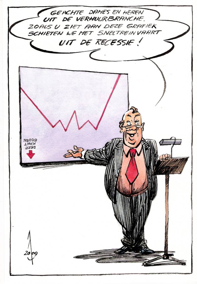 Vier voorbeelden van cartoons die ik heb gemaakt voor RENT-IT, tijdschrijft voor de verhuurbranche.