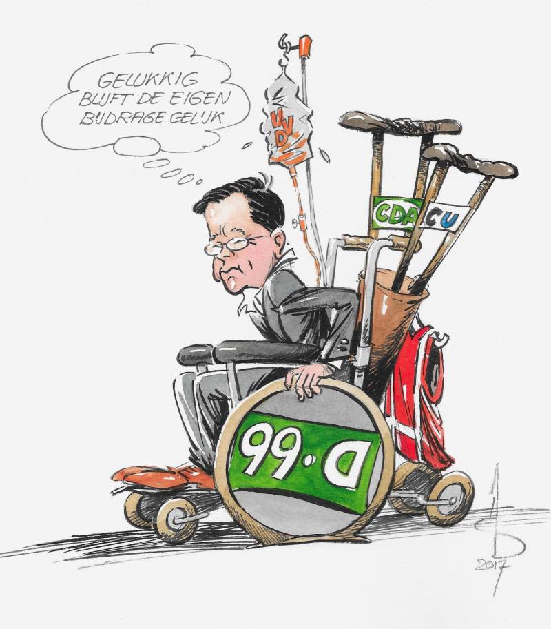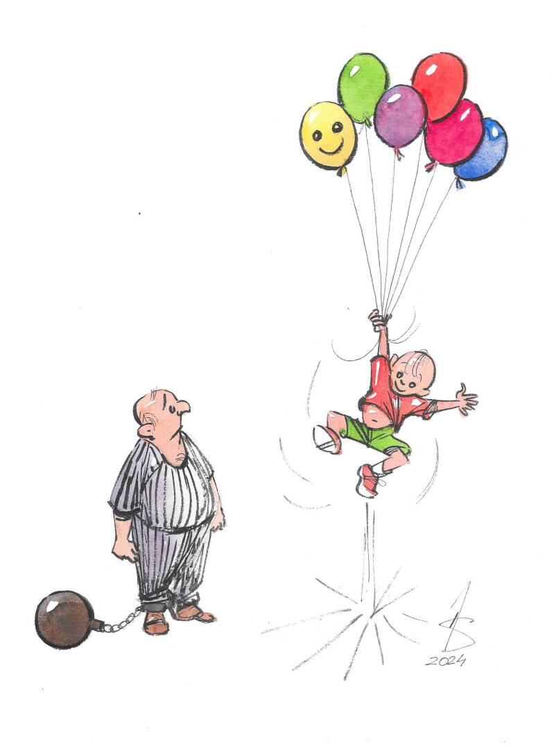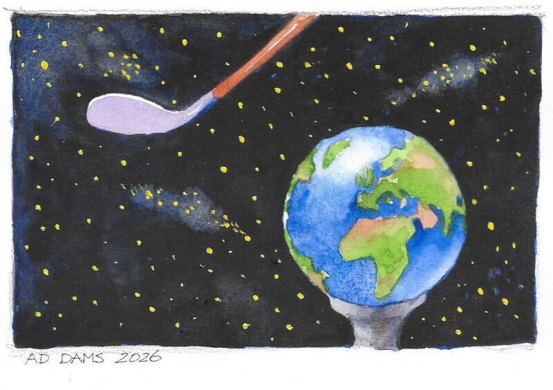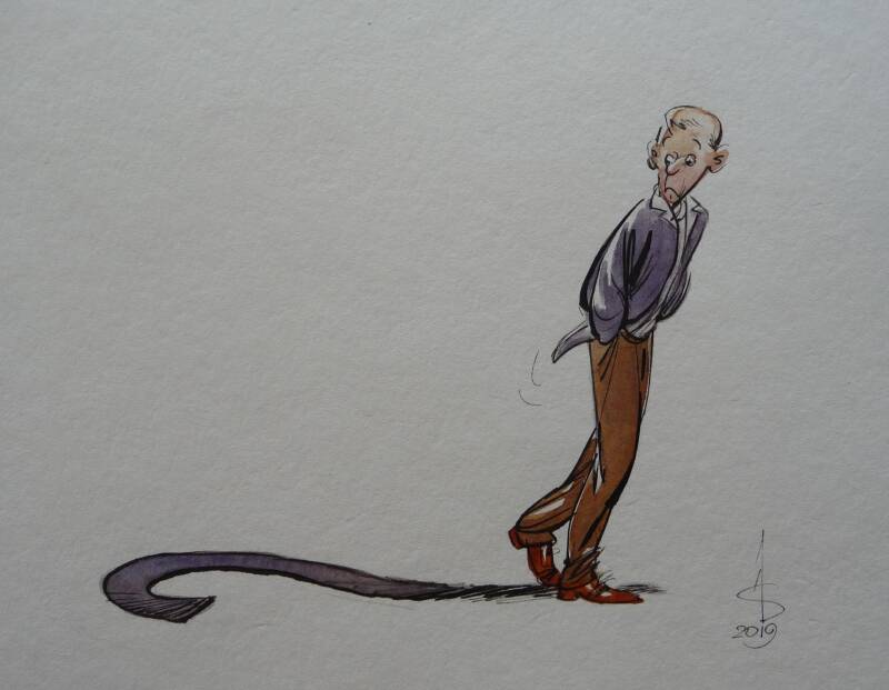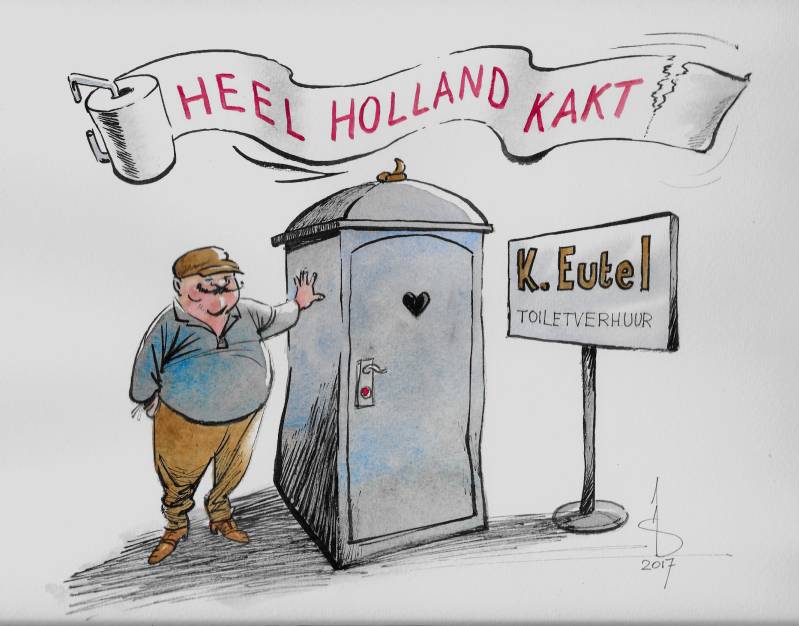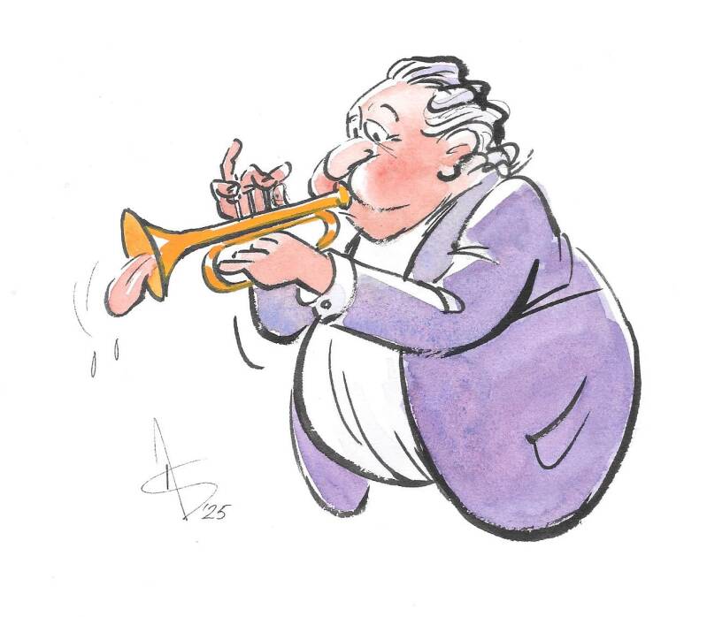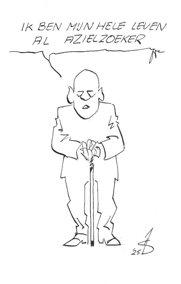 De biljartvereniging in Wintelre heeft een voorzitter die al vijftig jaar in funktie is. Dat noem ik nog eens een prestatie. Mij werd gevraagd om dit heuglijke feit op een pakkende manier te vereeuwigen. Welnu, dit is dus een voorzitter geworden die "er bovenop zit."