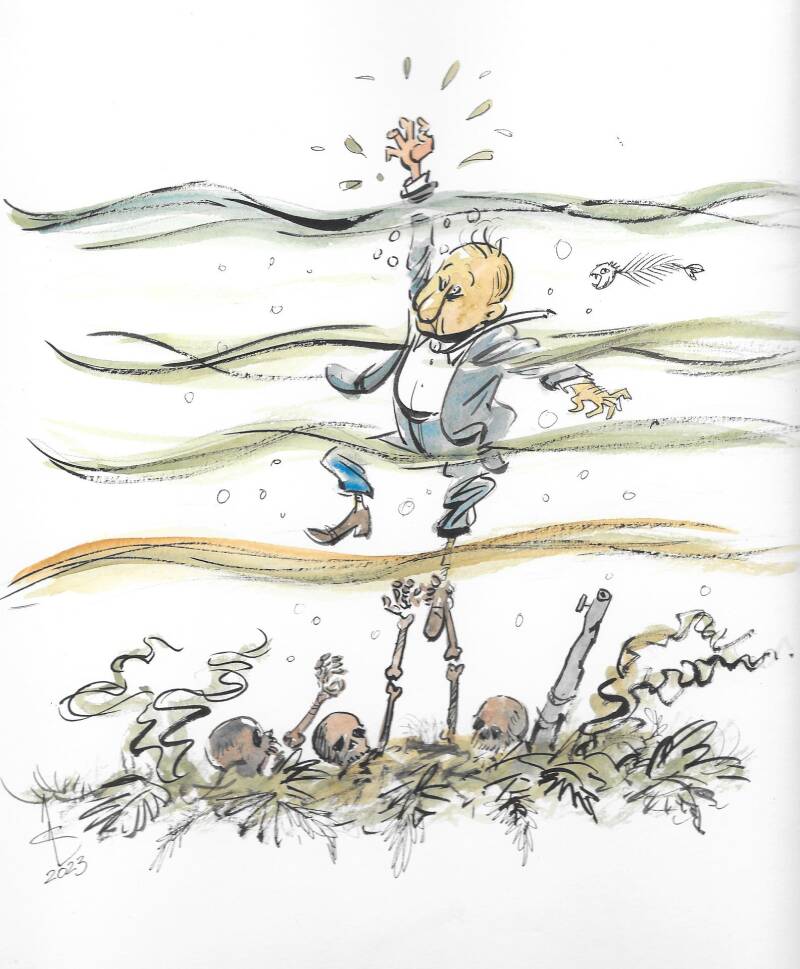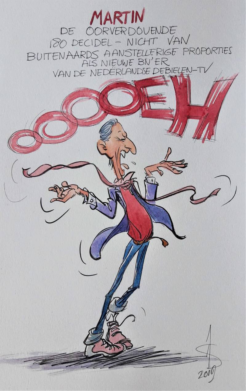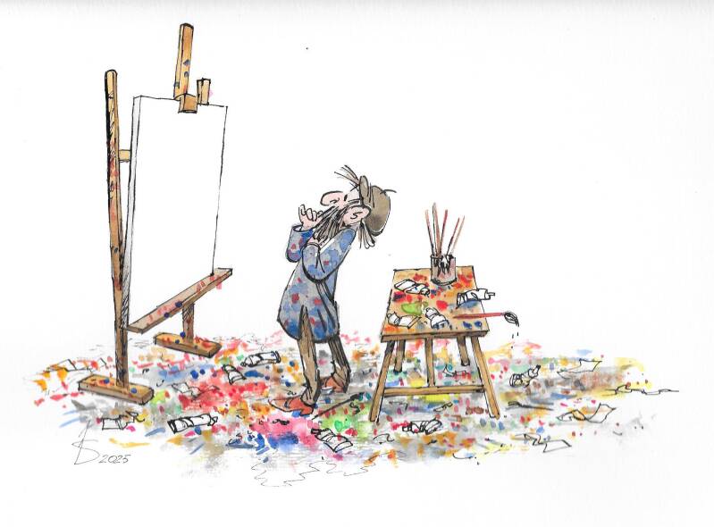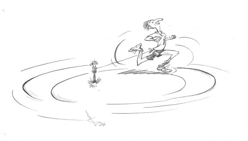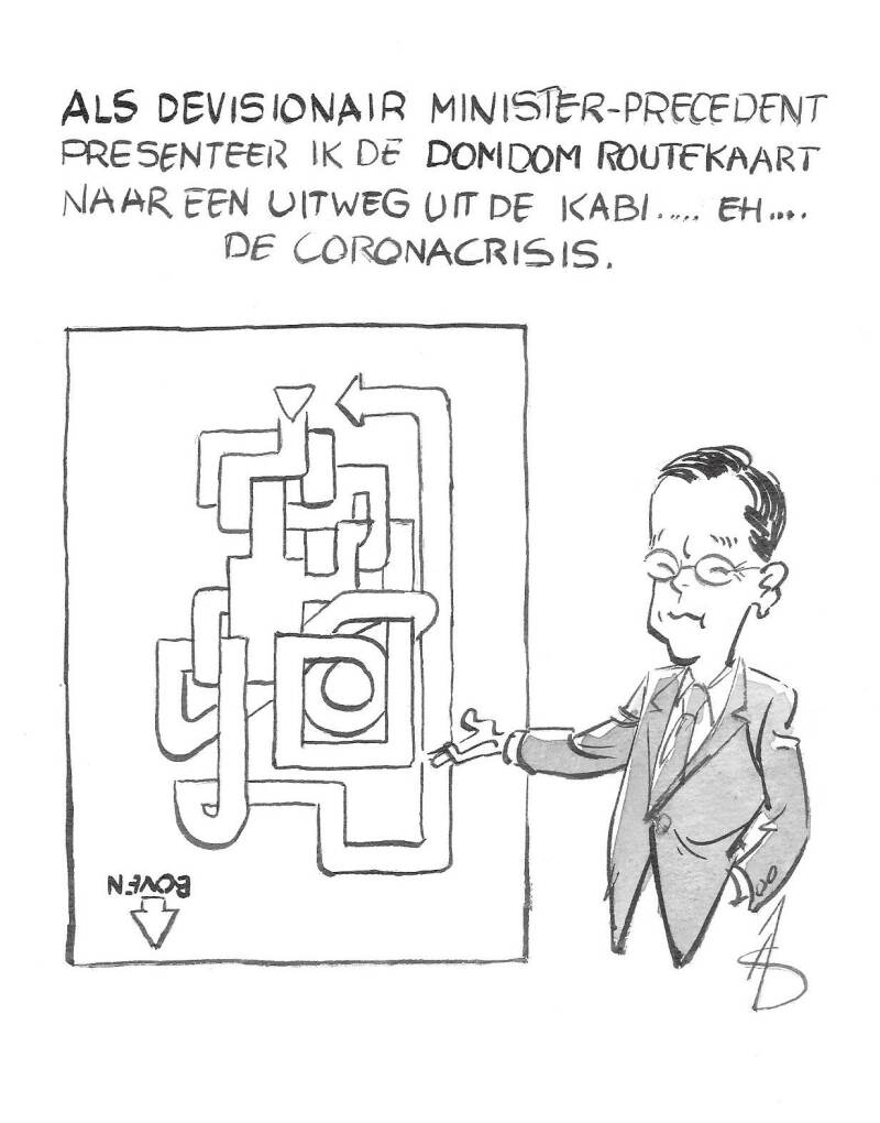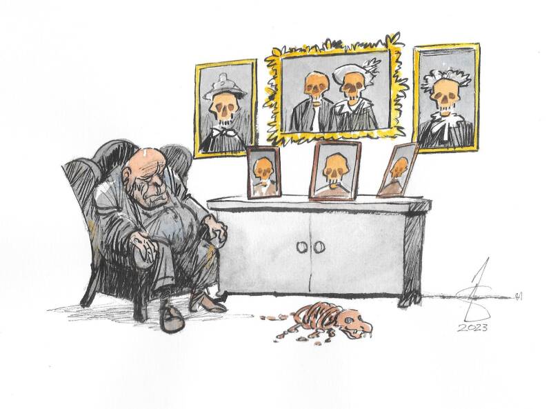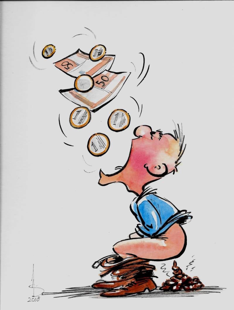 De biljartvereniging in Wintelre heeft een voorzitter die al vijftig jaar in funktie is. Dat noem ik nog eens een prestatie. Mij werd gevraagd om dit heuglijke feit op een pakkende manier te vereeuwigen. Welnu, dit is dus een voorzitter geworden die "er bovenop zit."