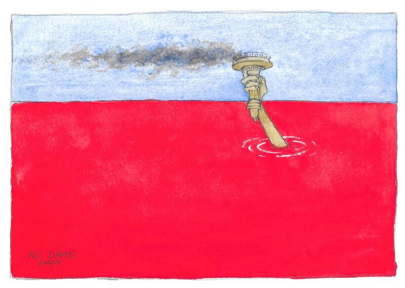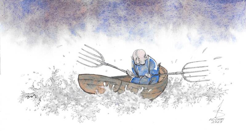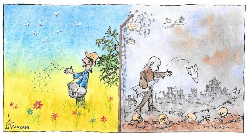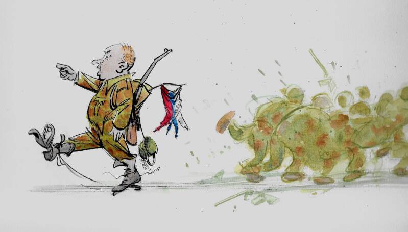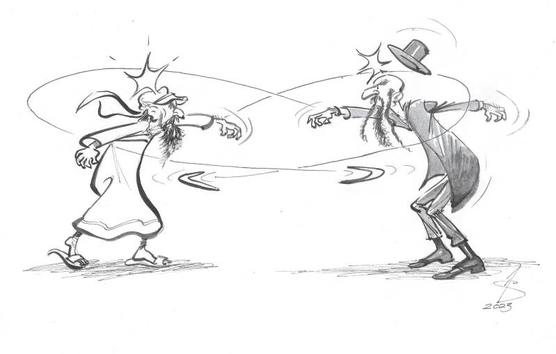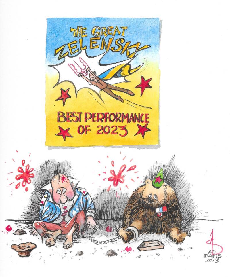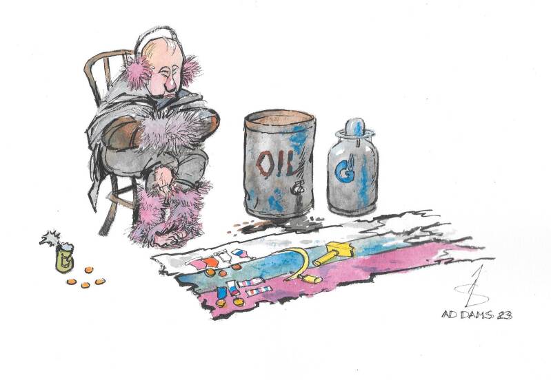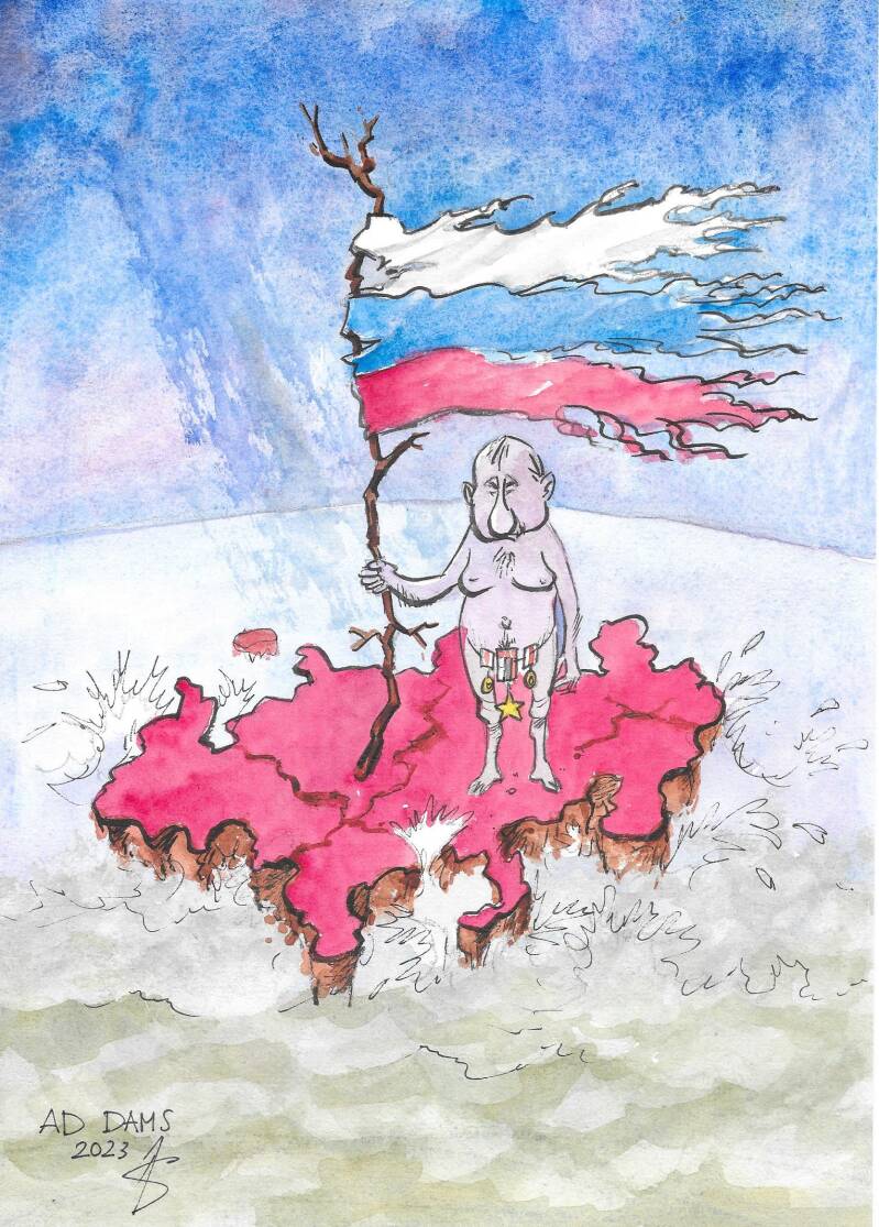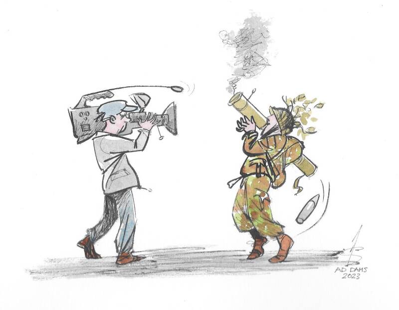 De biljartvereniging in Wintelre heeft een voorzitter die al vijftig jaar in funktie is. Dat noem ik nog eens een prestatie. Mij werd gevraagd om dit heuglijke feit op een pakkende manier te vereeuwigen. Welnu, dit is dus een voorzitter geworden die "er bovenop zit."