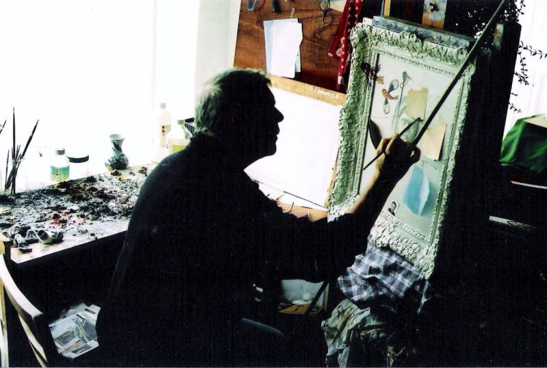 Werken aan een tromp l'oeil van een bijzondere soort. Lijst en afbeelding zijn een samenspel van een optische illusie. Moet nog het een en ander aan gebeuren.