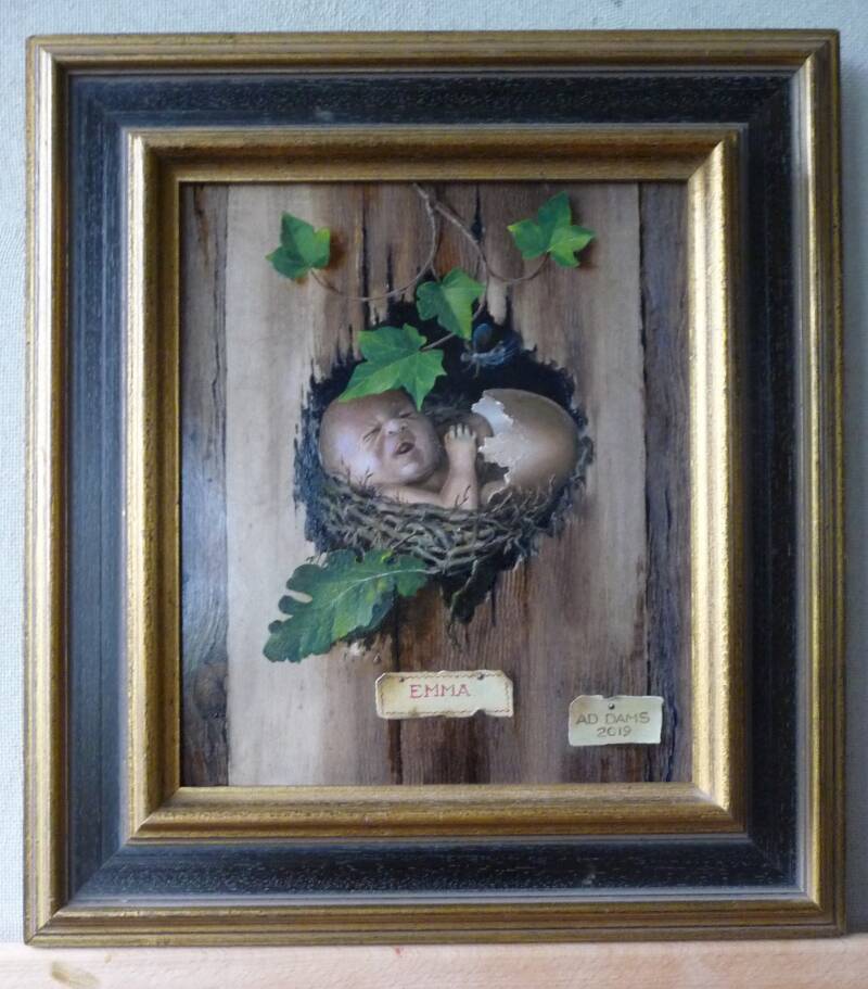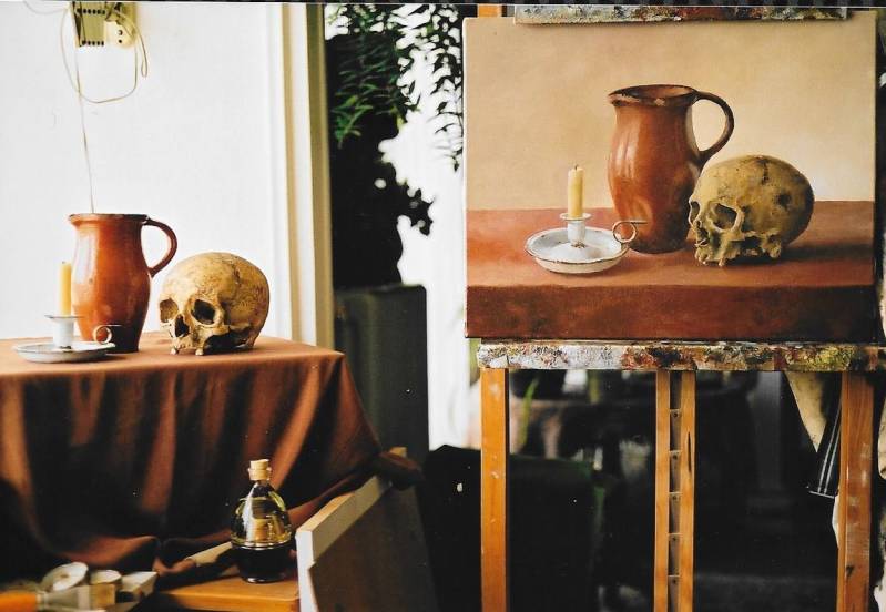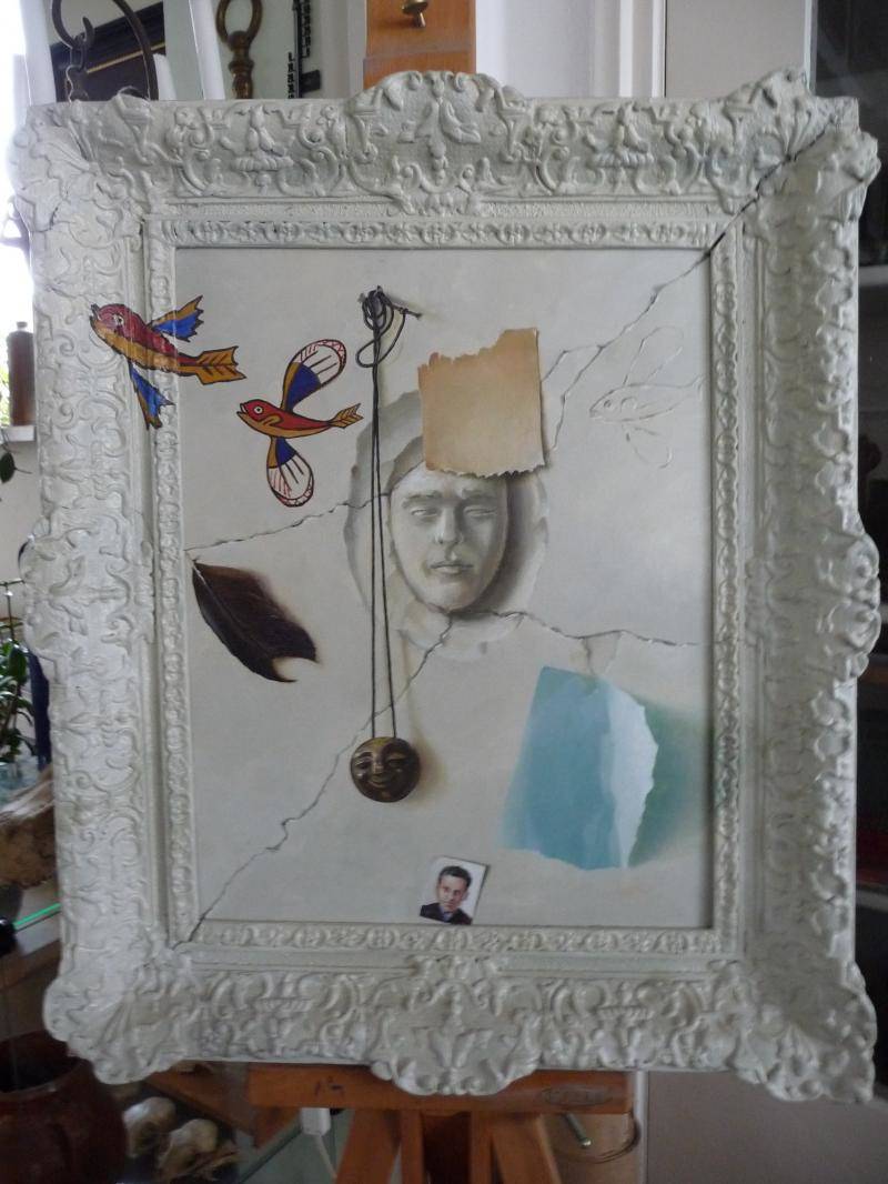 Dit schilderij (zonder ombouw van de gipsen elementen) is te koop. Info via mijn contactpagina.